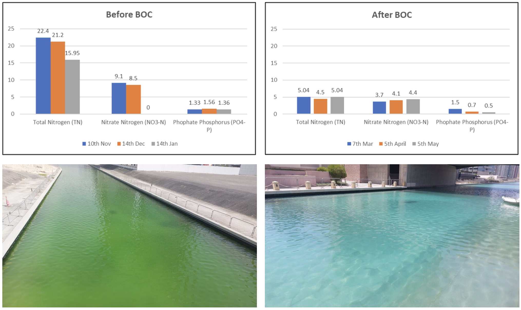 Bio Catalyst has successfully improved water quality and operational efficiency in the waterway. The increased dissolved oxygen and reduced contaminants confirm its effectiveness. The sustainable approach not only ensures regulatory compliance but also reduces operational costs and safeguards health, making it a viable solution for water management.
